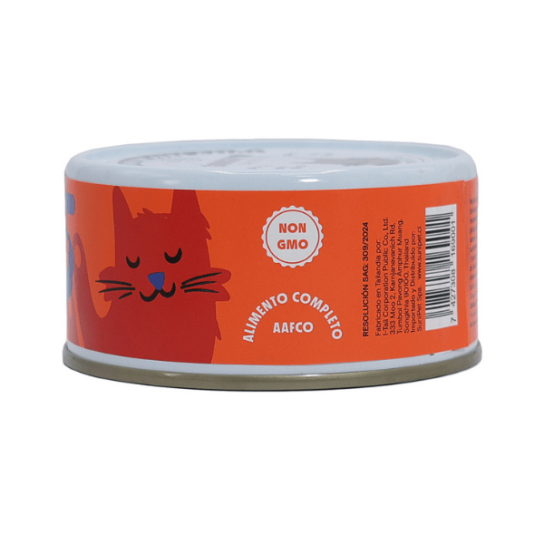 Alimento húmedo para gatos, completo y funcional. Rico en carne 100% de Salmón y Atún. Con aceite de salmón y vitaminas B1, B2 y B3. Ayuda a mantener la piel y el pelaje sanos, reduce problemas como la caída excesiva del pelo, caspa o prurito. Enriquecido con taurina, prebióticos y vitaminas. Libre de transgénicos. Con sello nutricional AAFCO.
